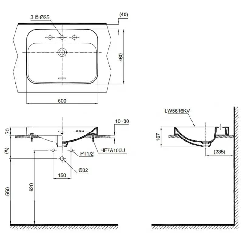 Thông Số Kỹ Thuật Chi Tiết Của Chậu Rửa Lavabo Toto LT5616C: