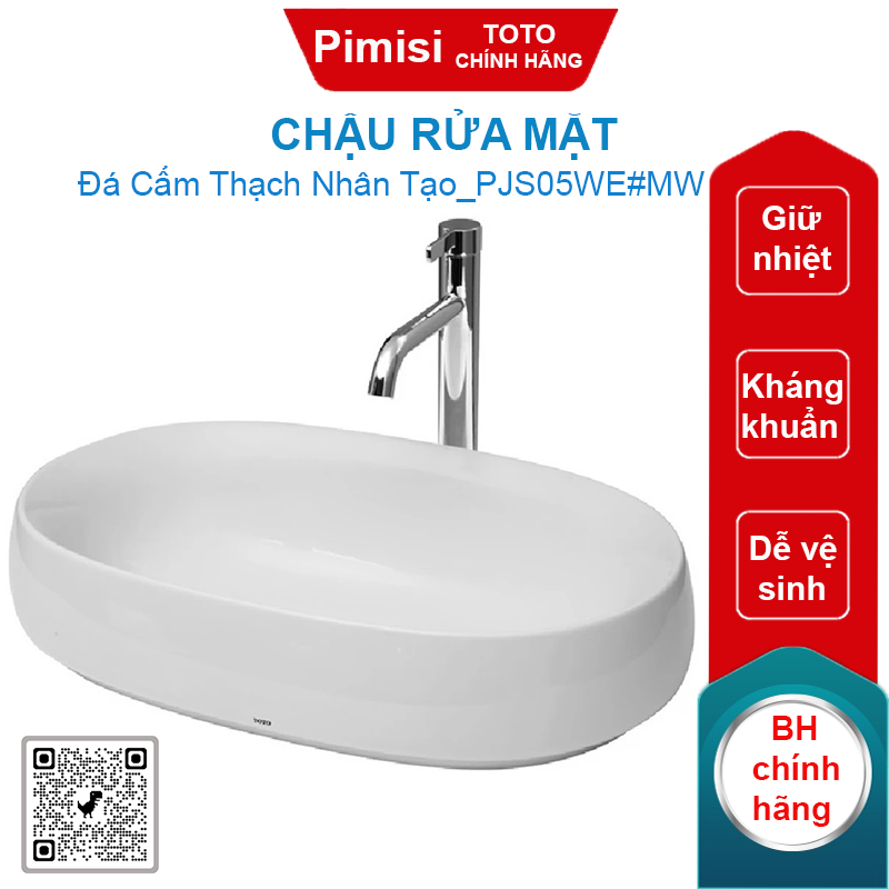 Chậu rửa lavabo TOTO PJS05WE#MW đặt bàn đá cẩm thạch nhân tạo