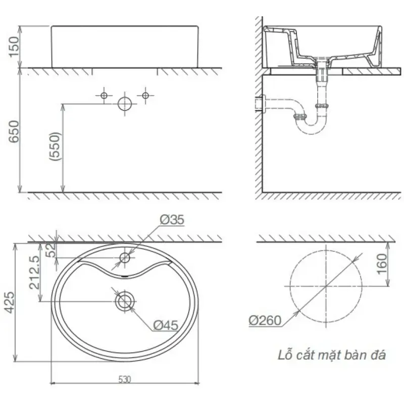 Hướng Dẫn Lắp Đặt Chậu Rửa Mặt Dương Bàn Viglacera CD19 Tròn: