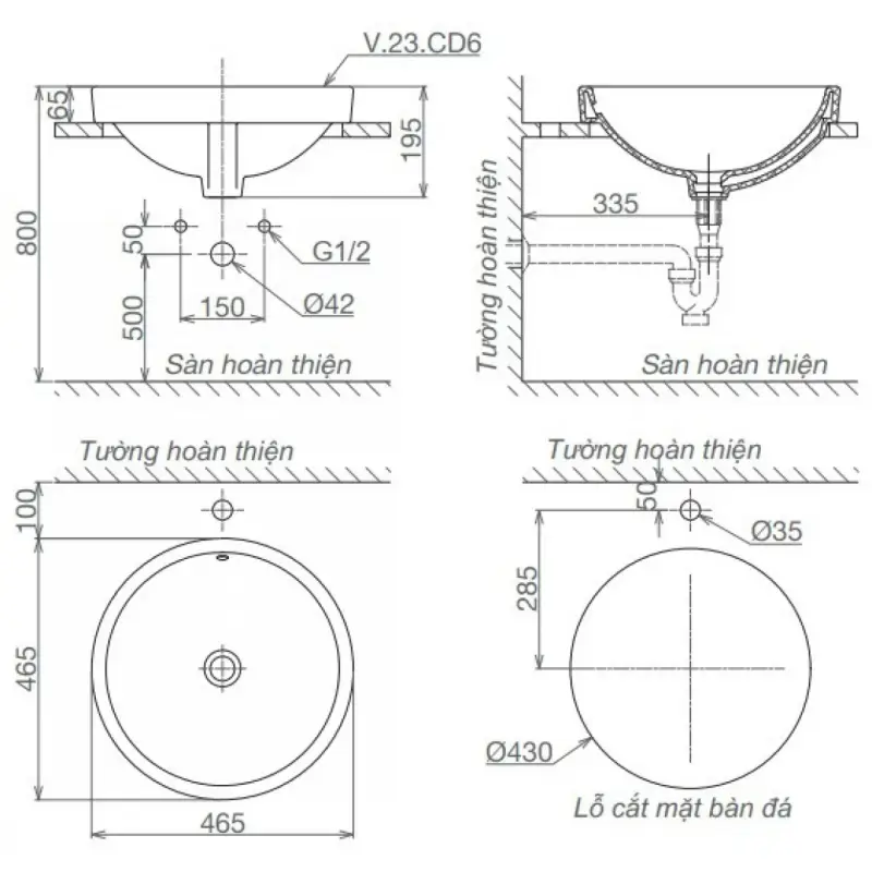 - Mọi thông số kỹ thuật của chậu rửa mặt dương bàn Viglacera CD6 tròn mang tính khách quan có thể có sai số của công cụ đo lường