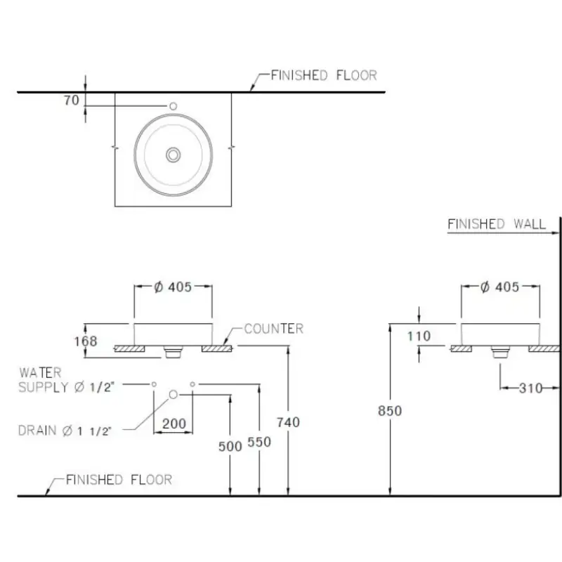 - Kích thước: 405 x 405 x 168 mm (Xem chi tiết ở phần hướng dẫn lắp đặt).