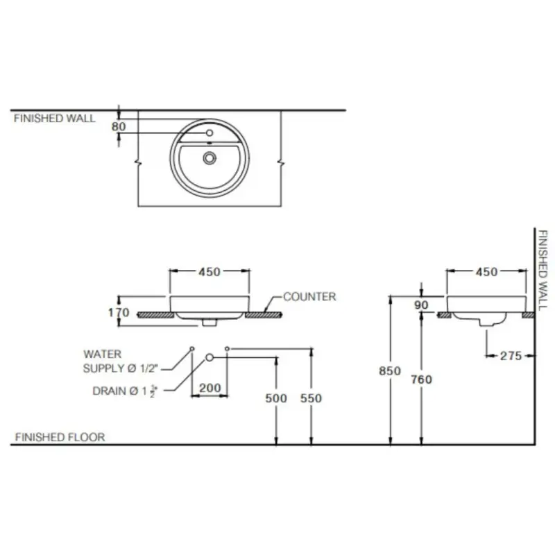 - Kích thước: 450 x 450 x 170 mm (Xem chi tiết ở phần hướng dẫn lắp đặt).
