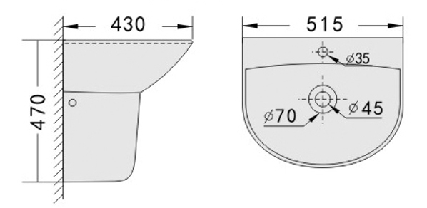Chậu rửa mặt lavabo chân lửng Kolni 5300SE