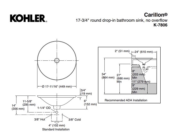 Chậu rửa mặt lavabo dương vành Kohler K-7806-0