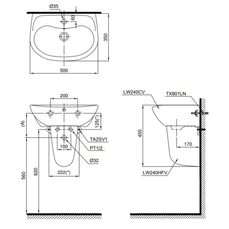 Thông Số Kỹ Thuật Chi Tiết Của Chậu Rửa Mặt Lavabo Toto LHT240CS: