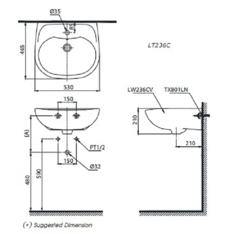 Thông Số Kỹ Thuật Chi Tiết Của Chậu Rửa Mặt Lavabo Toto LT236CS: