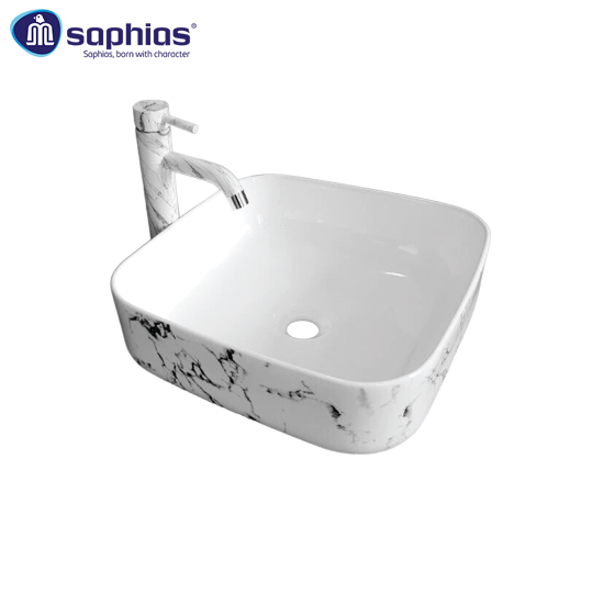 Chậu rửa mặt lavabo vân đá trắng đen Saphias TS-8007A