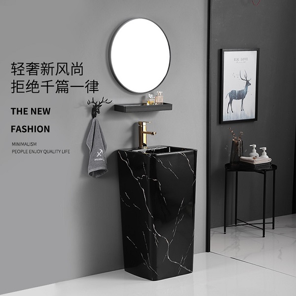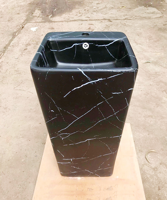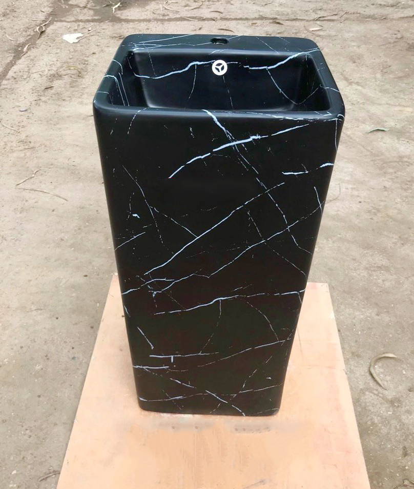 Chậu rửa mặt nghệ thuật chân đứng màu đen vân đá Miken MKC-6020BB