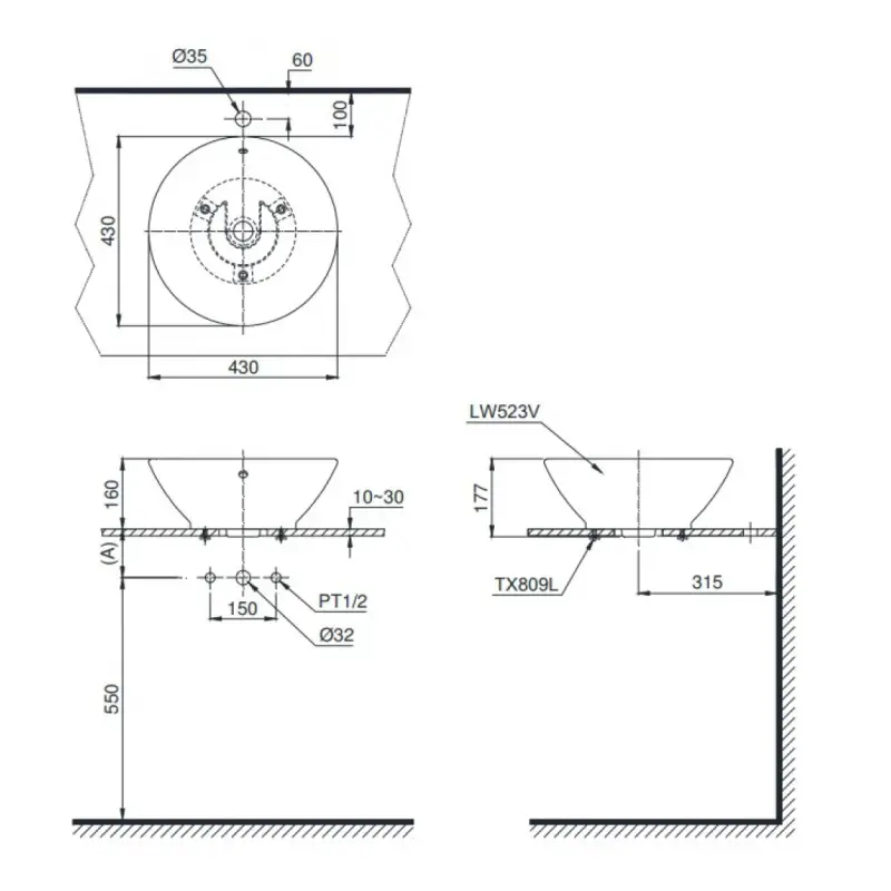Chậu rửa mặt TOTO LT523S#XW đặt bàn hình tròn
