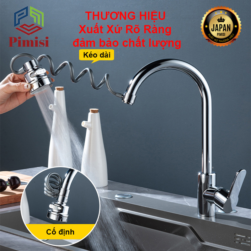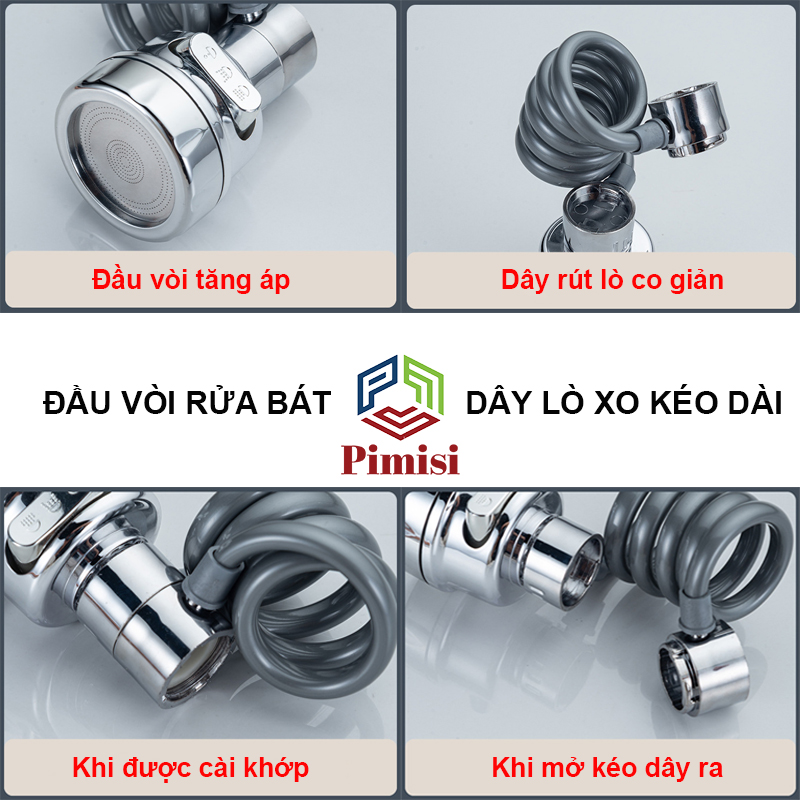 - Được thiết kế đa chắc năng vừa có thể tăng áp, gắn cố định vào đầu vòi rửa chén, đồng thời khi cần có thể kéo dài ra nhờ dây lò xo nhằm vệ sinh khắp mặt chậu rửa bát 1-2-3 hố đều được, đến từng ngóc ngách của chậu rửa.