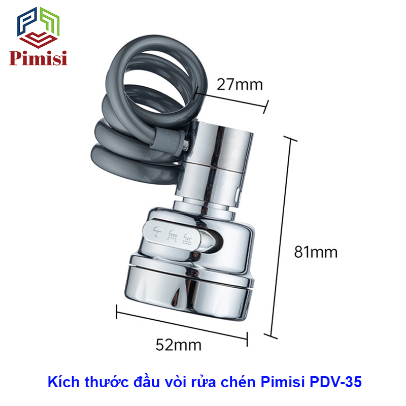- Mọi thông số kích thước đầu vòi rửa bát tăng áp Pimisi PDV-35 mang tính khách quan, có thể có sai số nhỏ của công cụ đo lường.