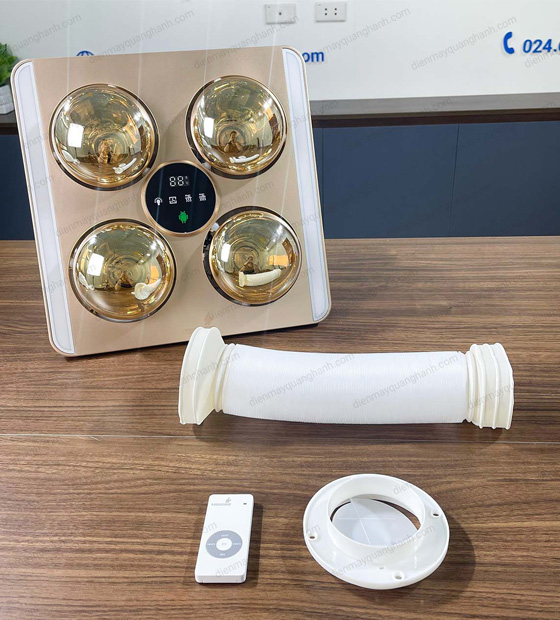 Điều khiển từ xa có khả năng chịu nước: 4 công tắc điều khiển. Công tắc 1 cho đèn chiếu sáng. Công tắc 2 quạt thông gió. Công tắc 3 cho 2 bóng sưởi (sử dụng khi trời chưa lạnh). Công tắc 4 cho 2 bóng sưởi còn lại (sử dụng cả 4 bóng sưởi khi trời lạnh). Điều khiển từ xa sử dụng công nghệ mới, chỉ cần nhấn 1 nút duy nhất là có thể đồng bộ được điều khiển từ xa và bộ nhận tín hiệu.