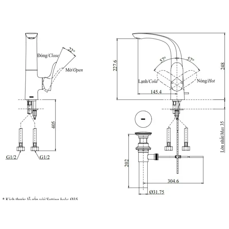 - Kích thước: (Xem chi tiết ở phần hướng dẫn lắp đặt).