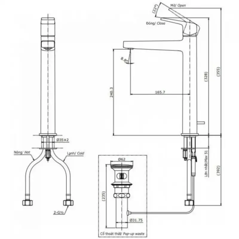 - Tối Ưu Thẩm Mỹ và Không Gian: Vòi thân cao tạo điểm nhấn kiến trúc, tôn lên vẻ đẹp nghệ thuật của chậu đặt bàn.