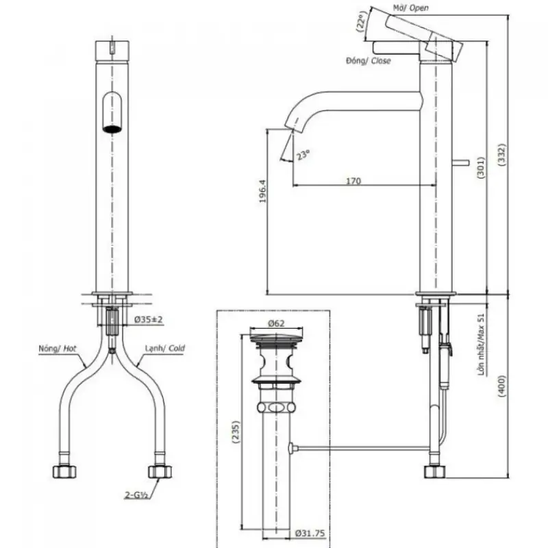 - Tối Ưu Thẩm Mỹ và Không Gian: Vòi thân cao tạo điểm nhấn kiến trúc, tôn lên vẻ đẹp nghệ thuật của chậu đặt bàn.
