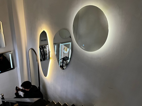 Bas treo: Bas treo Inox được thiết kế âm vào chi tiết khung gương, tối giản không gian hở trên tường