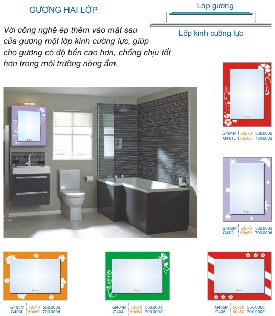 Gương phòng tắm 2 lớp Guzano tráng bạc