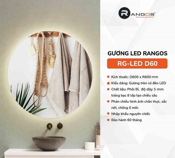 Kiểu dáng: Gương tròn LED hắt cạnh