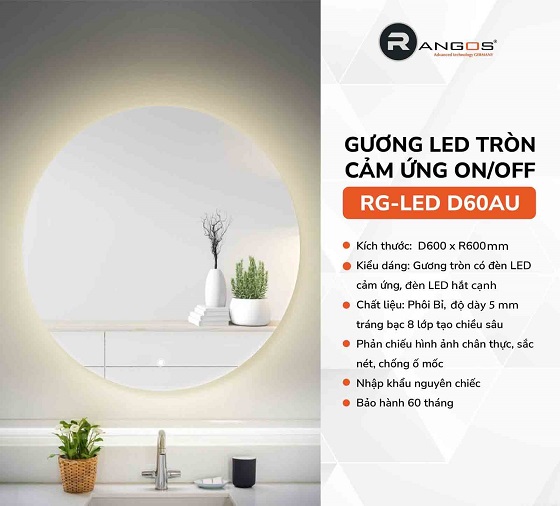Kiểu dáng: Gương tròn LED cảm ứng hắt cạnh