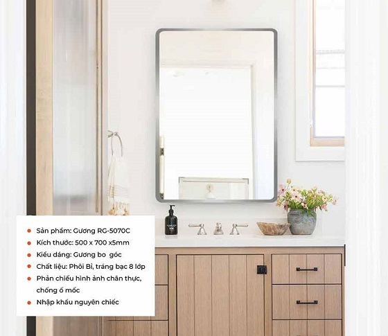 Kiểu dáng: Gương chữ nhật dọc, bo góc