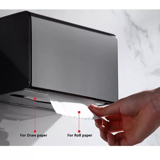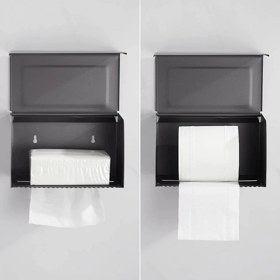 Sử dụng linh hoạt 2 loại giấy, giấy lau tay gấp đôi và giấy vệ sinh cuộn nhỏ