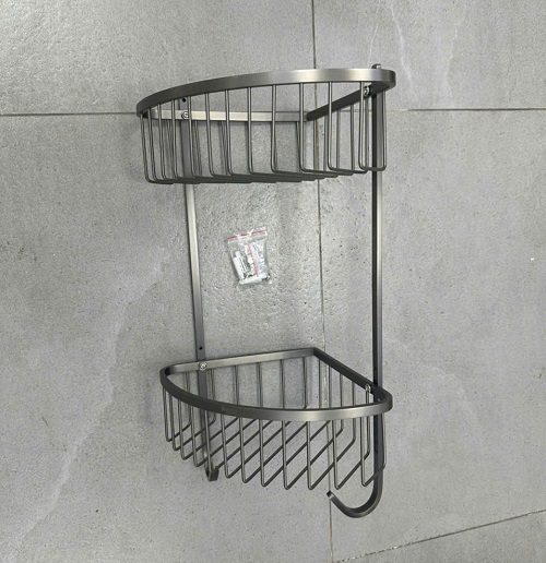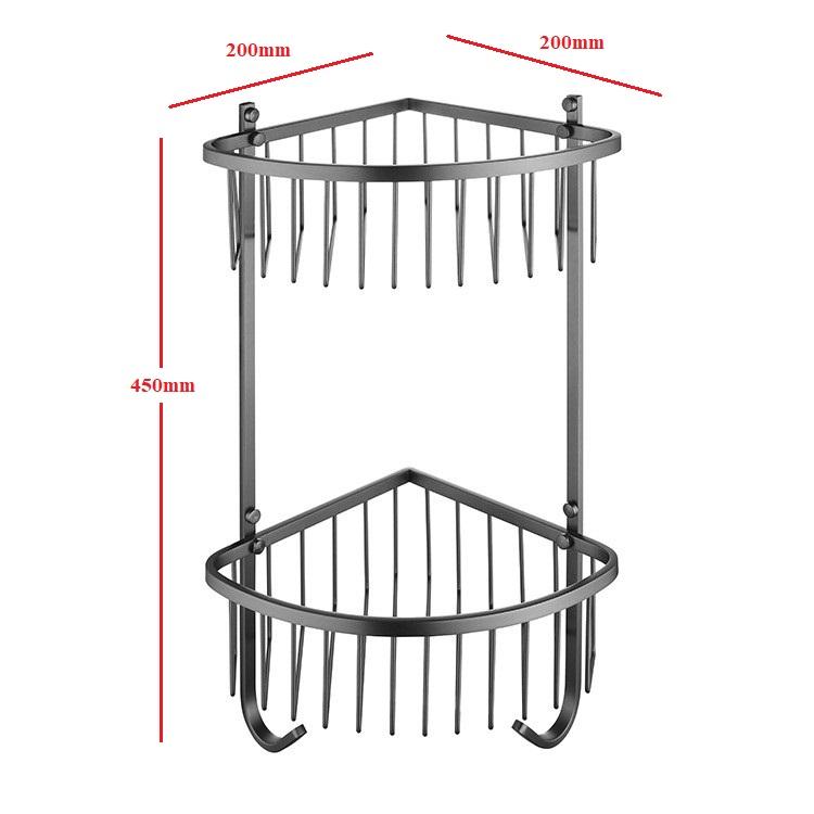 Kệ góc đựng dầu gội treo tường màu vàng hồng Rose Gold 2 tầng Miken AL-PH30