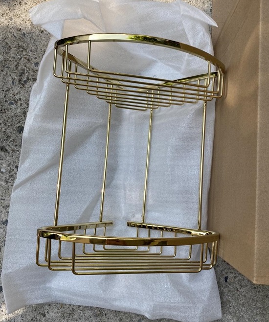 Kệ góc đựng dầu gội treo tường màu vàng hồng Rose Gold 2 tầng Miken AL-PH30