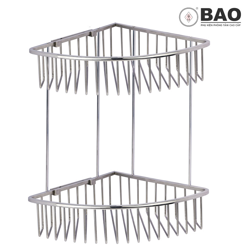 Kệ góc đựng dầu gội treo tường màu vàng hồng Rose Gold 2 tầng Miken AL-PH30