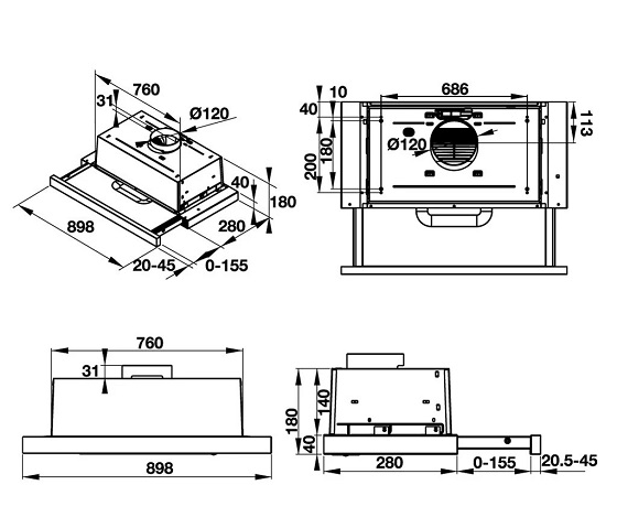 Công suất hút theo tiêu chuẩn Châu Âu DIN/EN 61591: 722 m³/h