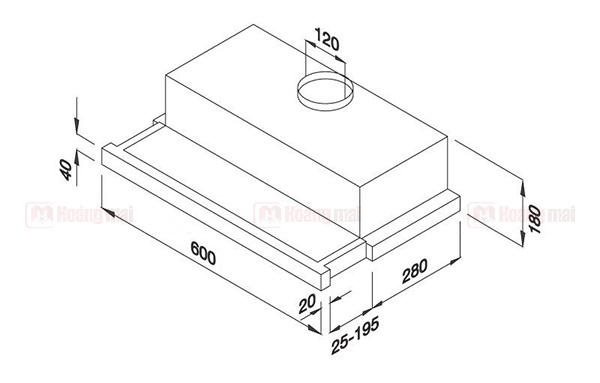 Kích thước: W600 x D305 x H180mm