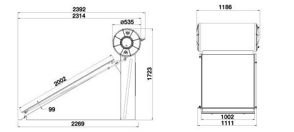 Hệ thống máy năng lượng mặt trời tuần hoàn tự nhiên đảm bảo nước luôn được làm nóng ngay cả khi bức xạ mặt trời thấp