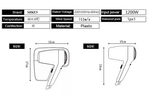 Máy sấy tóc treo tường màu đen Miken MKT-D90289B