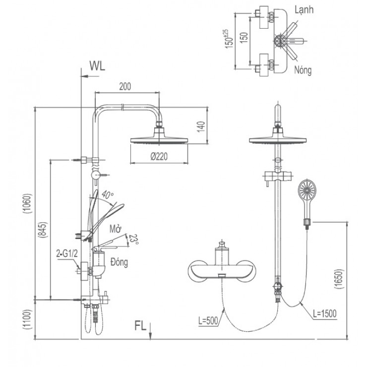 Áp lực nước 0.05 Mpa- 0.75 Mpa