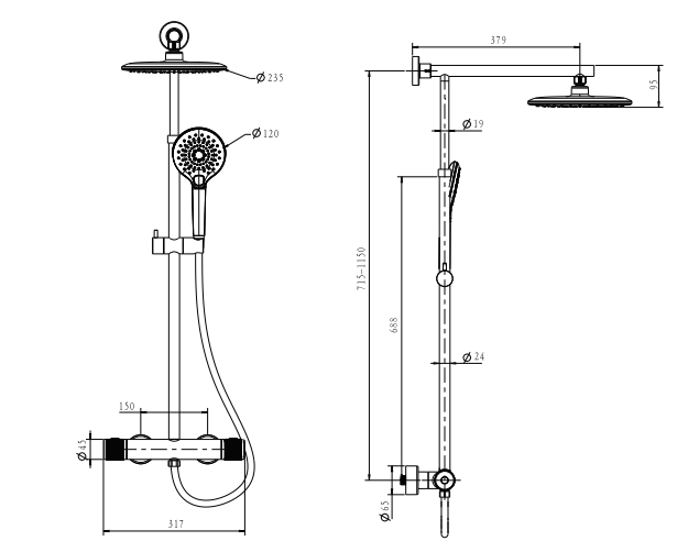 Sen cây tắm đứng màu trắng đen phím đàn Piano nhiệt độ Miken MK-10065WB