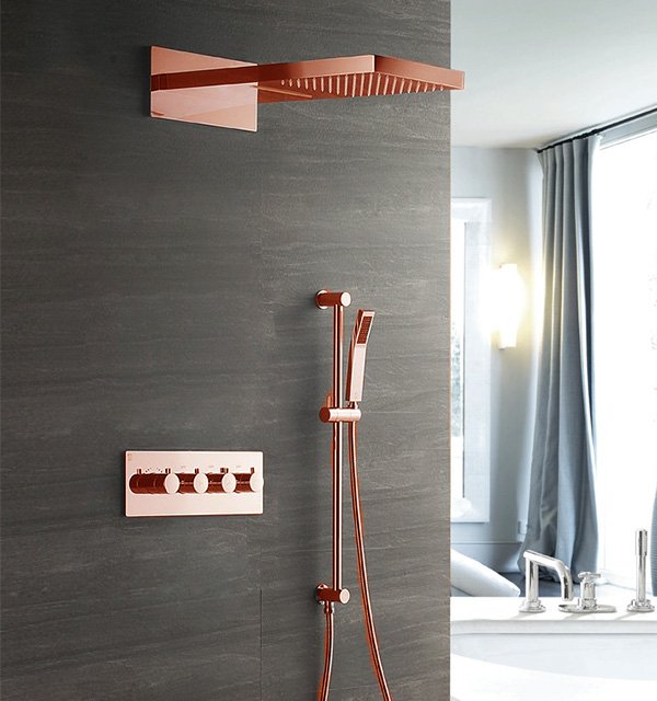 Bát sen gắn tường Đồng mạ Crom màu hồng vàng 57x27cm
