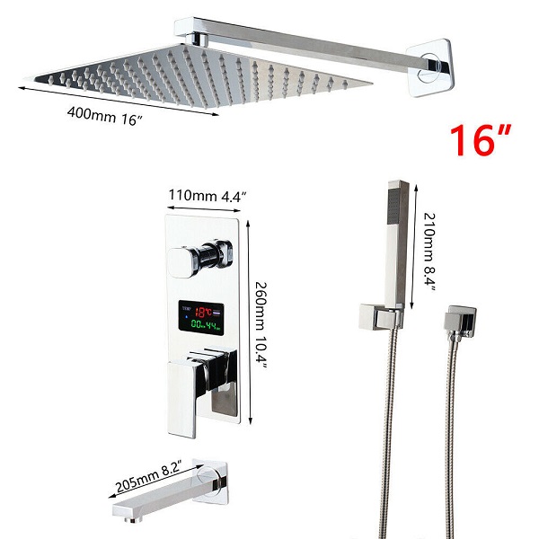 Sen tắm âm tường bát vuông gắn tường, có màn hình hiển thị nhiệt độ