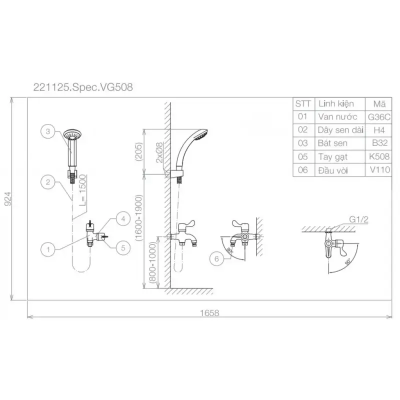 Thông Số Kỹ Thuật Chi Tiết Của Sen Tắm Lạnh Viglacera VG508: