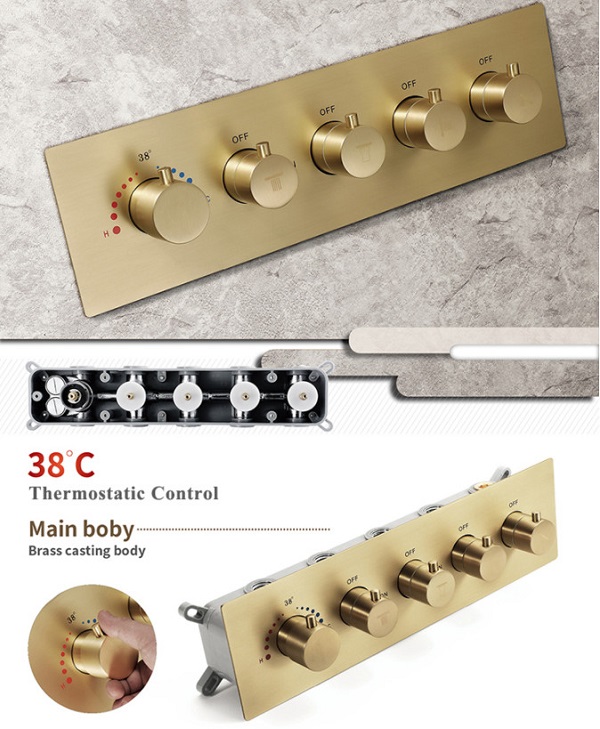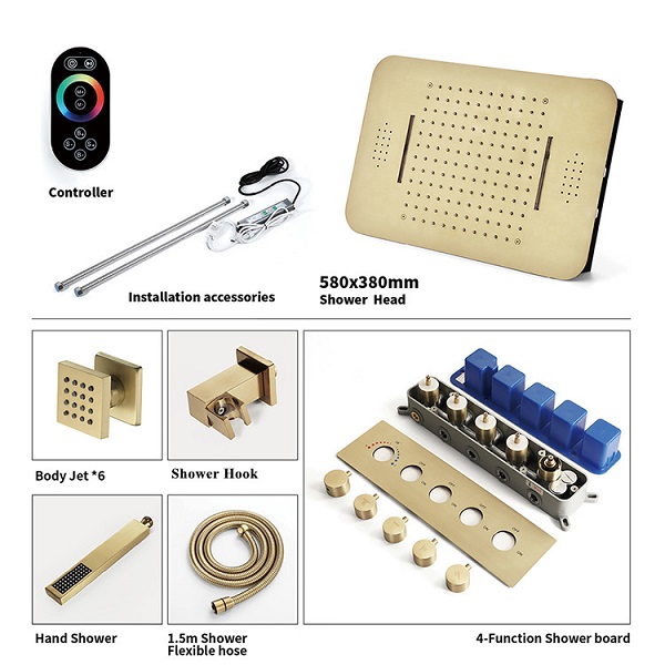 Sen tắm mạ crom âm tường bát vuông gắn trần điều chỉnh nhiệt độ