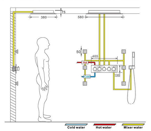 Bát sen âm trần đèn Led, bát tắm phụ gắn tường