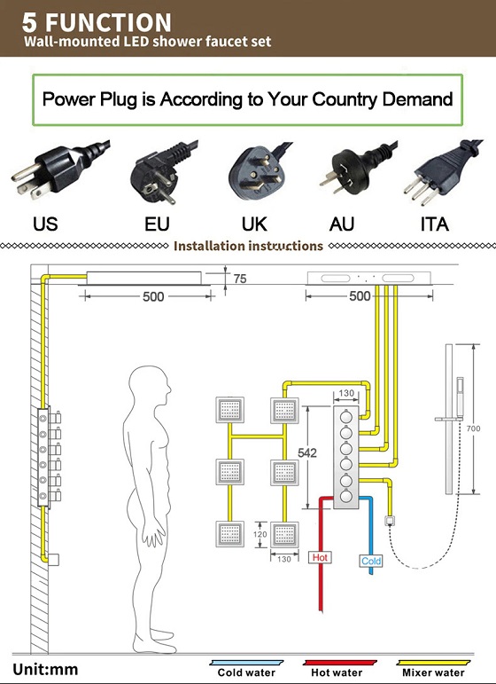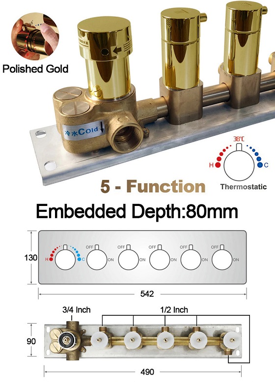 Sen tắm nhiệt độ âm tường masage màu vàng Miken MB20HZG (Bóng hoặc xước mờ)