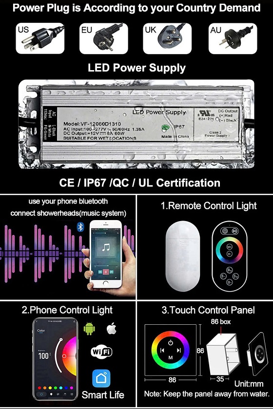 Đèn led bát trần, Chảy thác, Phun mưa, sương mù