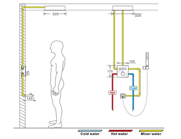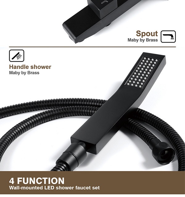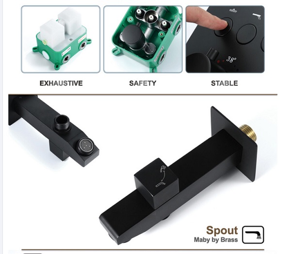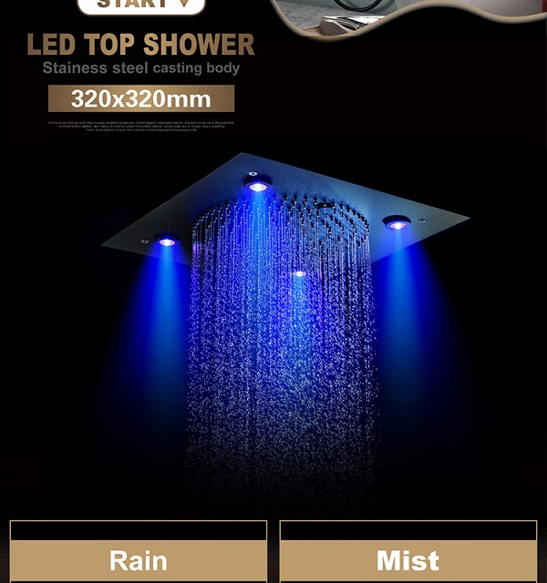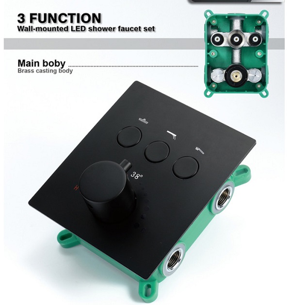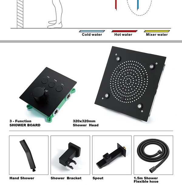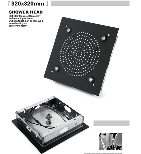 Sen tắm nhiệt độ âm tường màu đen bát Led HI05078B (Bát trần 32x32cm – Đặt hàng 10-15 ngày)