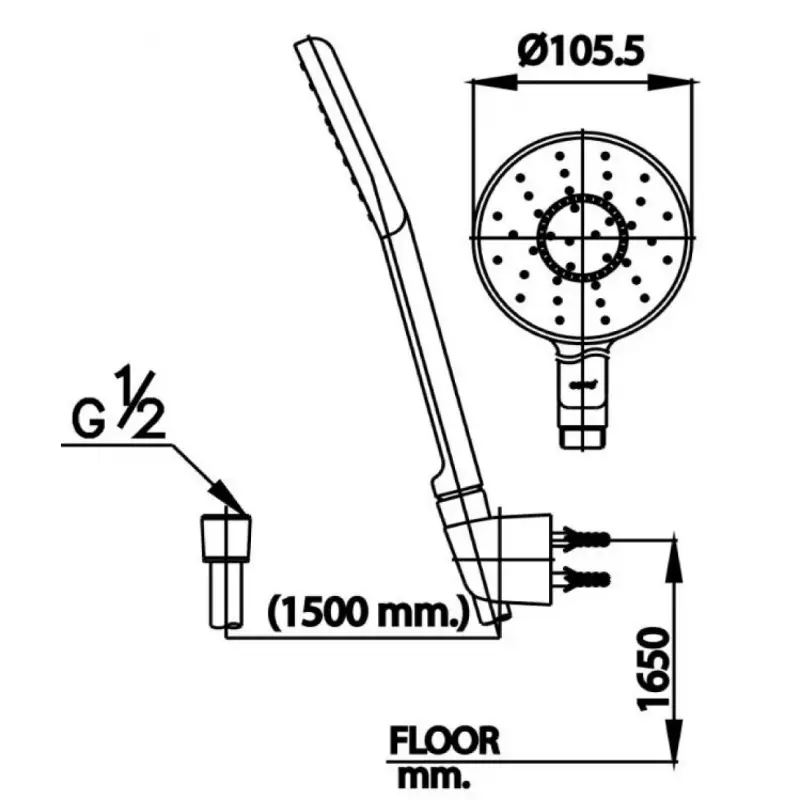 - Kích thước: 105.5cm (Xem chi tiết ở phần hướng dẫn lắp đặt).