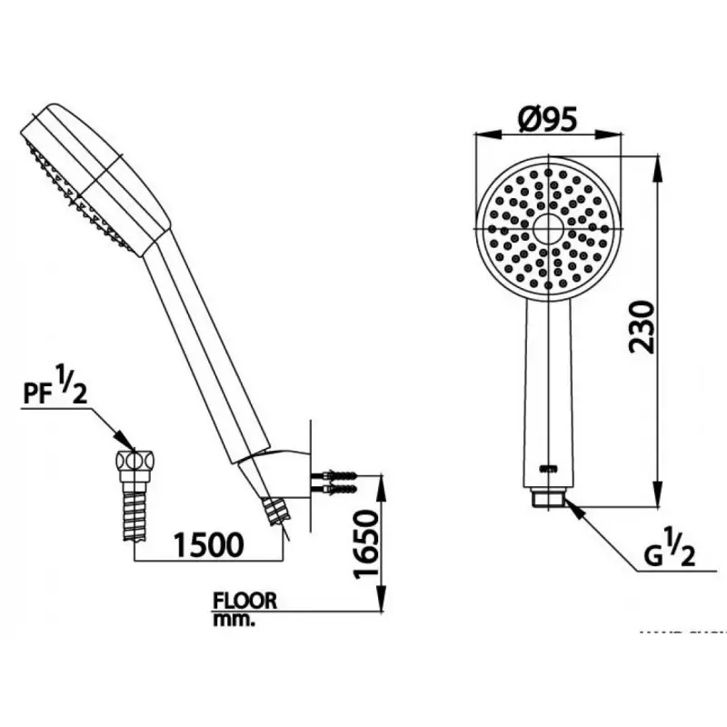 - Kích thước: 95cm (Xem chi tiết ở phần hướng dẫn lắp đặt).