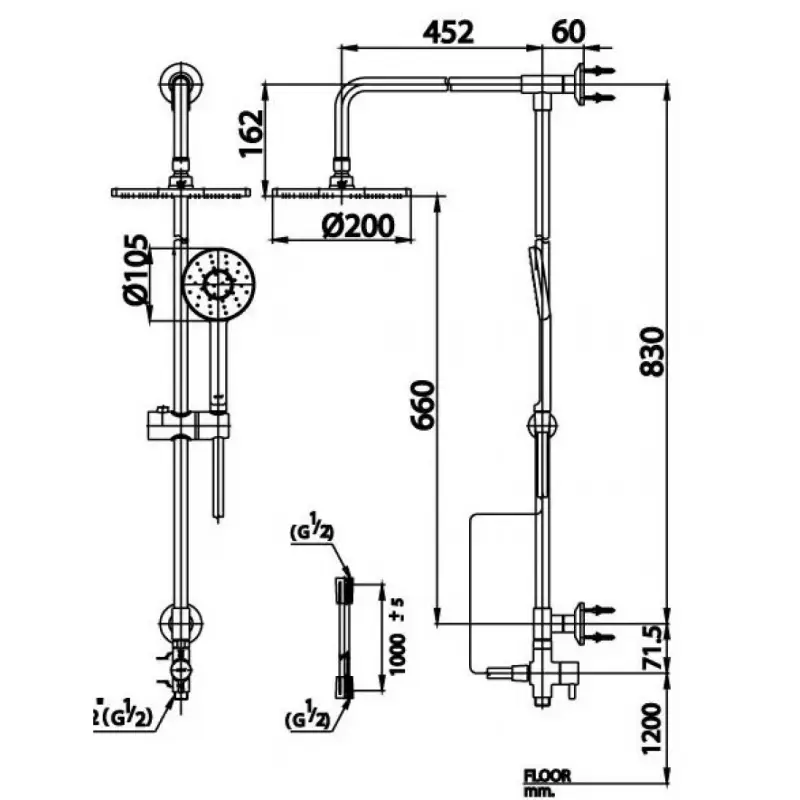 - Bao gồm: Đầu sen phun mưa và tay sen 1 chức năng.