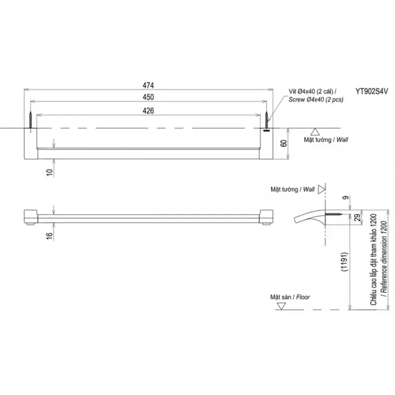 - Mọi thông số kỹ thuật giá treo khăn tắm Toto YT903S4V thanh đơn mang tính khách quan có thể có sai số của công cụ đo lường.