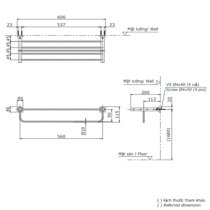 Thanh treo khăn TOTO YTS408BV hai tầng
