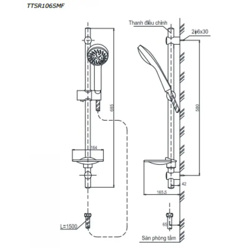 Thông Số Kỹ Thuật Chi Tiết Của Thanh Trượt Sen Tắm Toto TTSR106SMF: