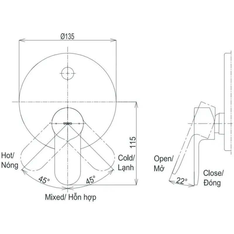 - Đồng thau đúc – An toàn ẩn sâu: Thân van được chế tác dày dặn, đảm bảo không rò rỉ hay nứt vỡ trong môi trường âm tường, giúp bảo vệ cấu trúc công trình suốt hàng chục năm.