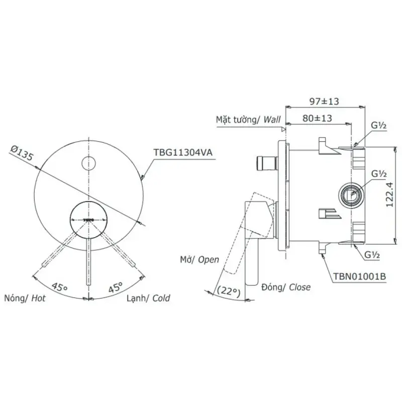Báo Giá Bộ Trộn Nước Nóng Lạnh Âm Tường TBG11304V Chính Hãng Ở Đâu Rẻ Nhất – Tốt Nhất?